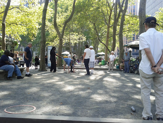 - Bryant Park is a true urban density park — there are many, many things going on in a small space, and thousands of people doing them all at the same time. One example, in one corner of the park, is petanque — basically, bocce ball, with the requisite quibbling and measuring of distances:
