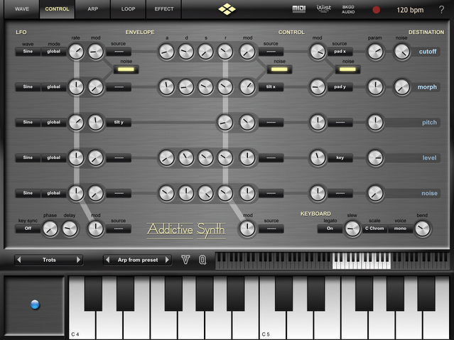 Things are different today. You can download a few apps and tinker about on an iPad for a few hours, and — voila, you can compose a fairly interesting chunk of music. This is what I’ve been up to over the past few days. I’ve been using Addictive Synth to produce basic sound structures — the app enables endless manipulation of sonic components (note all the knobs).