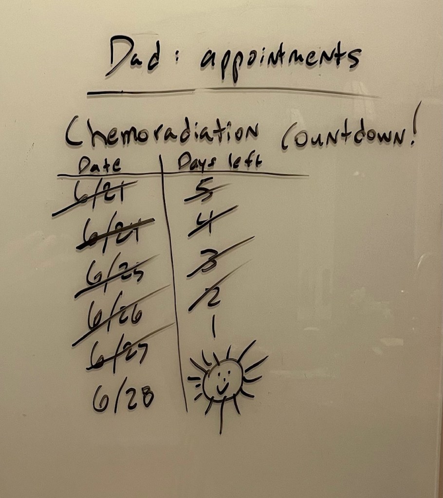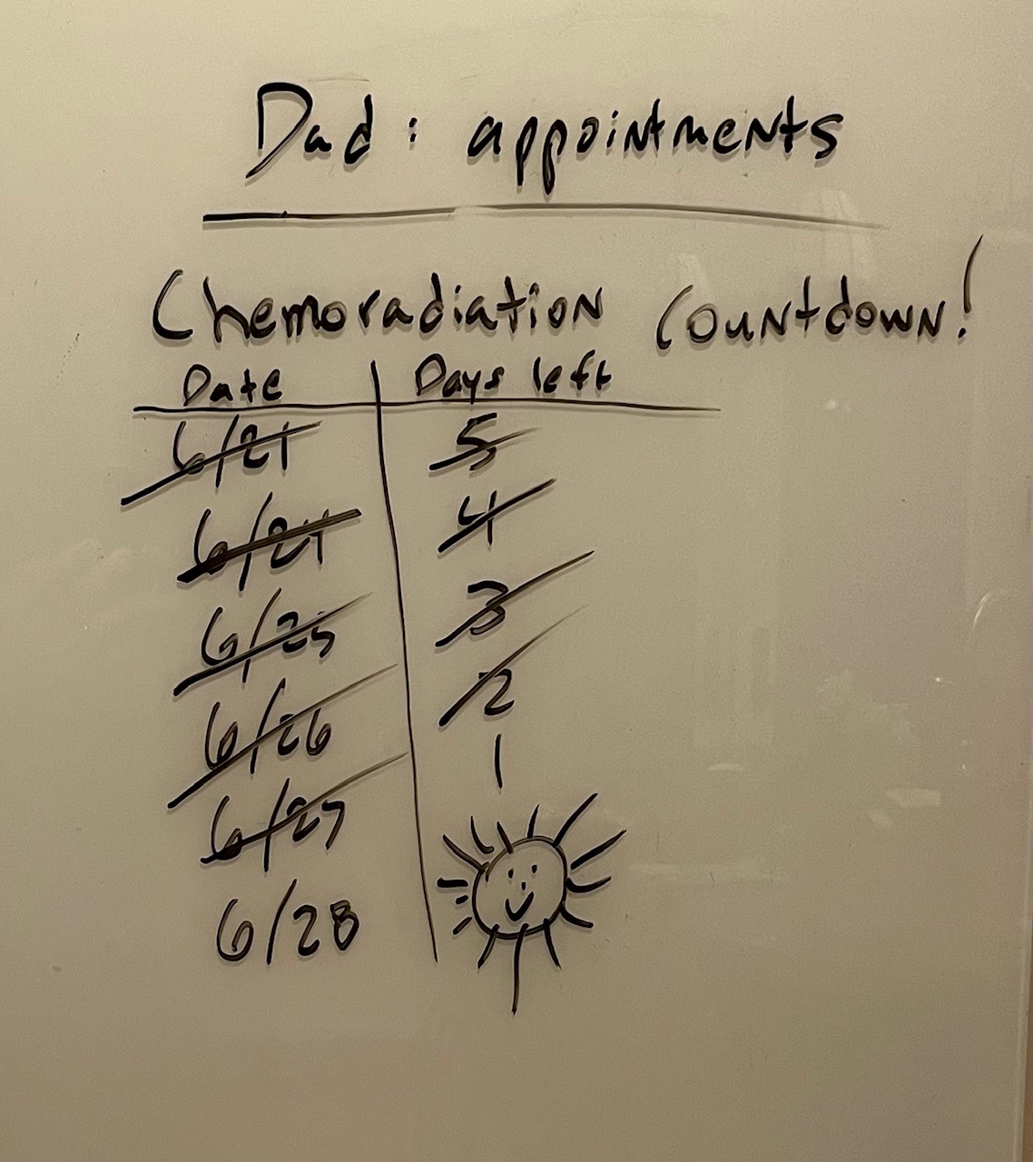 A M-F chemoradiation schedule means that Sunday is a relatively lucid day — the brain fog dissipates. On this Fathers Day, I have been scurrying through to-do lists, taking advantage of this opportunity when I’m thinking clearly.