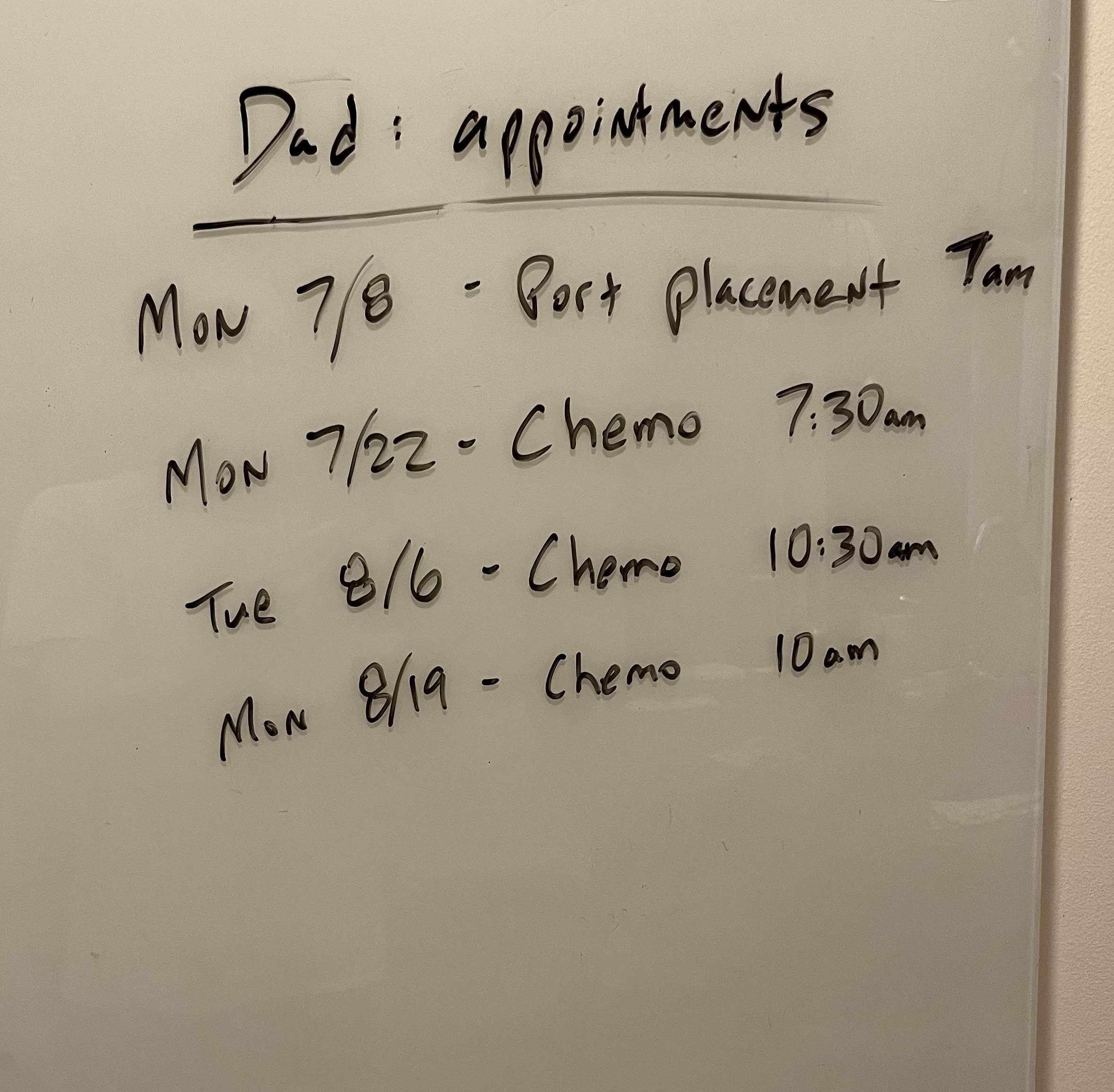 - The on-site infusions wrapped up today around 3pm, and they then got me attached to a pump, which is slowly administering another chemo drug to me over the next few days.